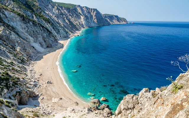 Beach of Myrtos is one of the most spectacular beaches in Greece with tall cliffs and white sand and the color sea that most travelers are seeking when they come to the Greek islands.