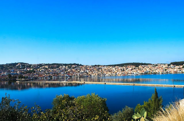 Across from Argostili is the town of Lixouri , the second largest town on Kefallonia which was built in 1534 and destroyed by the 1953 earthquake and rebuilt. It is visited mainly because of the museum and library of the Lakovates and because of its proximity to several beaches.